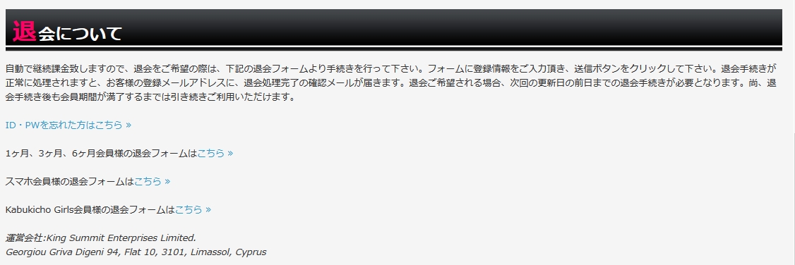 HEYZOの場合、自動継続方式を採用していています。ですので、退会をご希望される場合は、お客様のメンバーシップ更新日の2日前までに、 退会フォームより退会の手続きを行ってください。