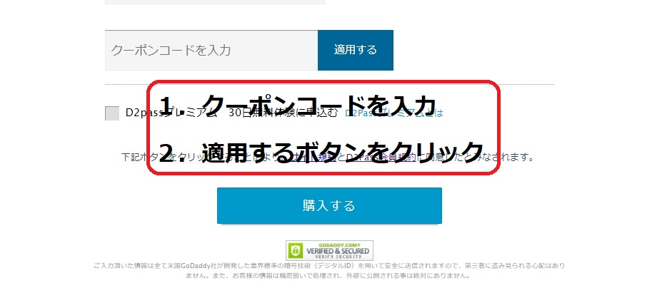 2.入会フォームの下のほうに「クーポンコードを入力」欄があります。